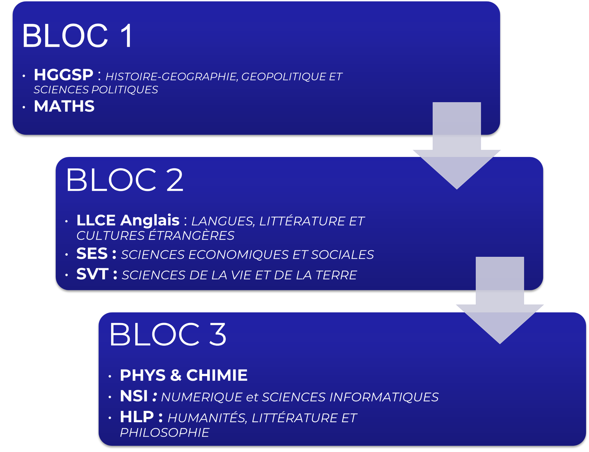 (Deux spécialités sont à conserver en Terminale, parmi celles choisies en Première ; pour connaitre les nombreuses combinatoires possibles, n’hésitez pas à écrire à ceciledemoures@isc03.com)